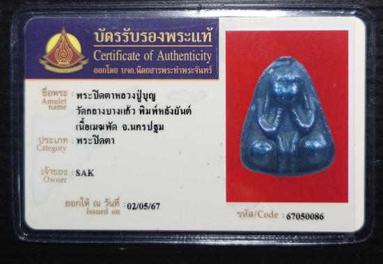 พระปิดตา เนื้อเมฆพัตร พิมพ์หลังยันต์ หลวงปู่บุญ วัดกลางบางแก้ว |