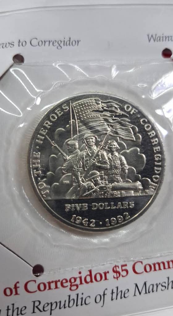 เหรียญที่ระลึก 5 ดอลลาร์ "TO THE HEROES OF CORREGIDOR" ซึ่งเป็นเหรียญที่ระลึกถึงวีรบุรุษแห่งคอร์เรฮิดอร์