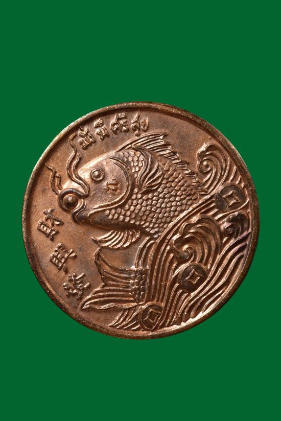 วัดใจ เคาะเดียว เหรียญมงคลปลาจีนคาบแก้ว (มั่งมี-ศรีสุข) เนื้อทองแดง หลวงปู่ทิม วัดพระขาว อยุธยา ปี 2549 |