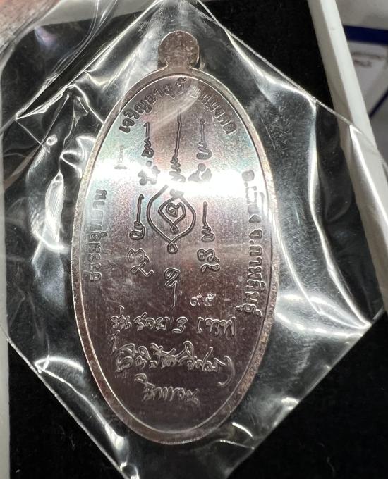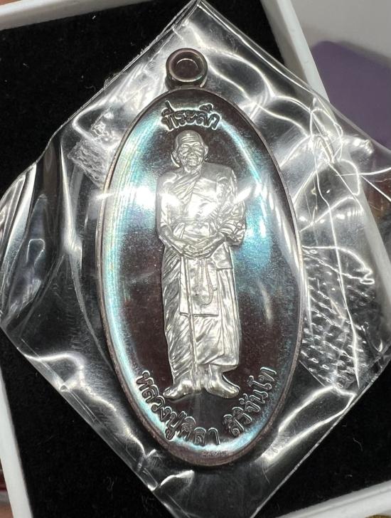 เหรียญยืน รวย3เทพ อายุวัฒนมงคล81 หลวงปู่มหาศิลา สิริจันโท เนื้อนวะหน้ากากเงิน (พิเศษติดรุ้งเขียว) เลข95 เลขสวยหายาก