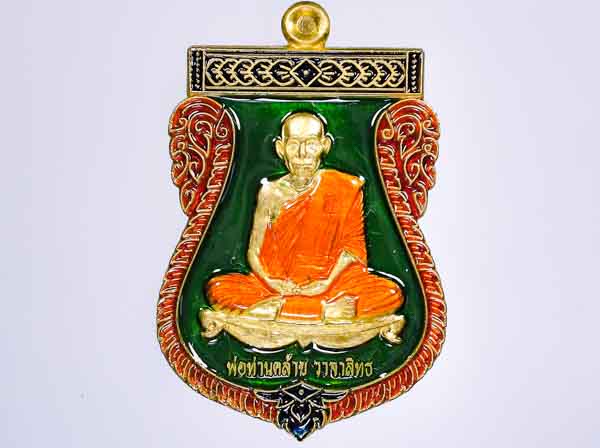 *เหรียญเสมาอายุยืน115ปี หลวงปู่อิ่ม วัดทุ่งนาใหม่ ด้านหน้า พ่อท่ายคล้าย วาจาสิทธิ์ หลังหลวงปู่อิ่ม เนื้อทองทิพย์ลงยา |