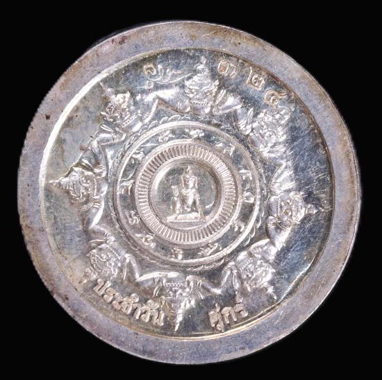 ชื่อพระเครื่อง เหรียญประจำวันรุ่นอยู่เย็นเป็นสุข เนื้อเงิน