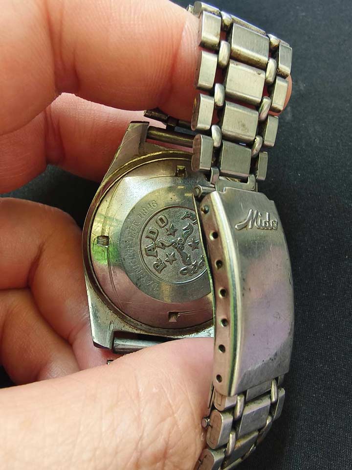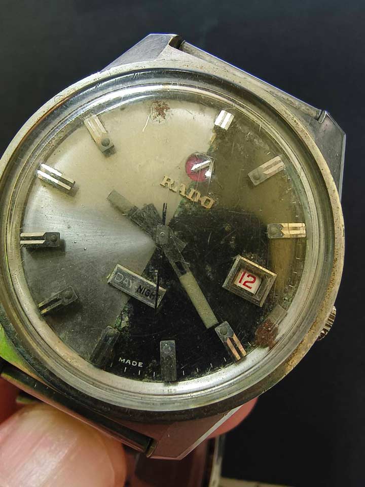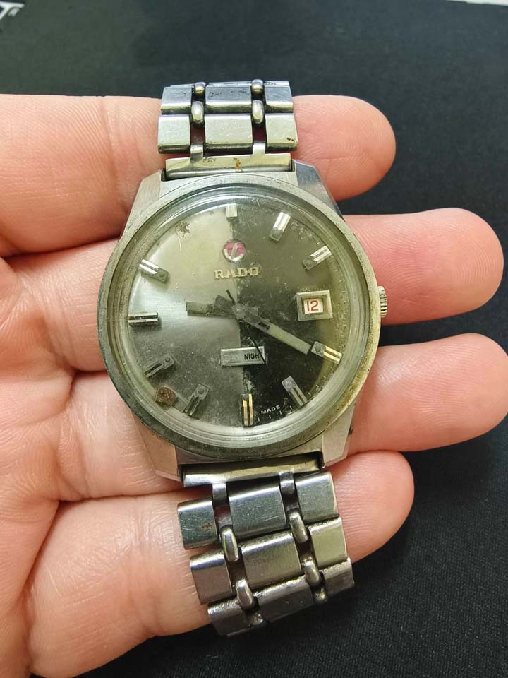 ตัวเรือน RADO DAY-NIGHT สาย Mido เหมาบ้านได้มา ไม่เคยเปิดฝาหลัง มองจากสภาพภายนอก สมอหมุน เข็มหมุน หลักบอกเวลาหลุดหนึ่งหลัก เขย่าแล้วไม่เดิน ขายเป็นอะไหล่งานช่างครับ