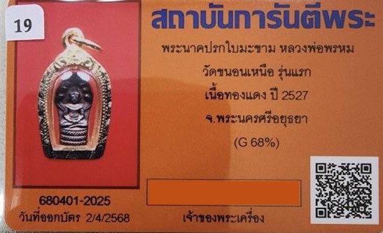 ปรกมะขาม หลวงพ่อพรหม วัดขนอนเหนือ รุ่นแรก ปี 27 เนื้อทองแดง พร้อมบัตรรับรอง