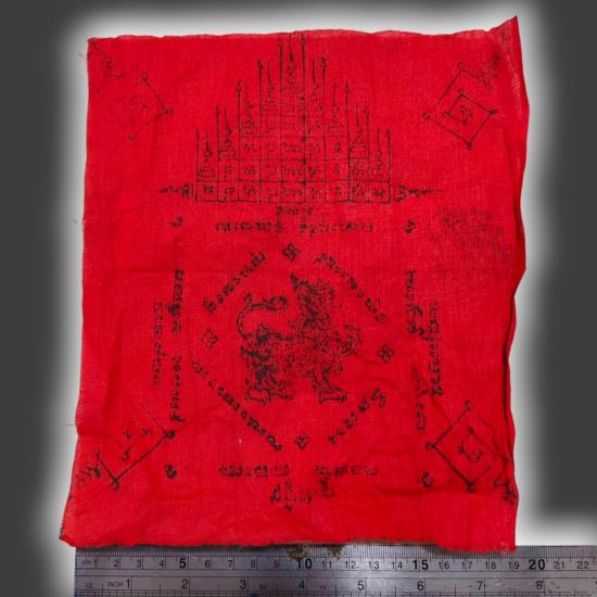 A1488.ผ้ายันต์สิงห์หลวงพ่อโต๊ะ วัดสระเกษ เคาะเดียวเเดง |