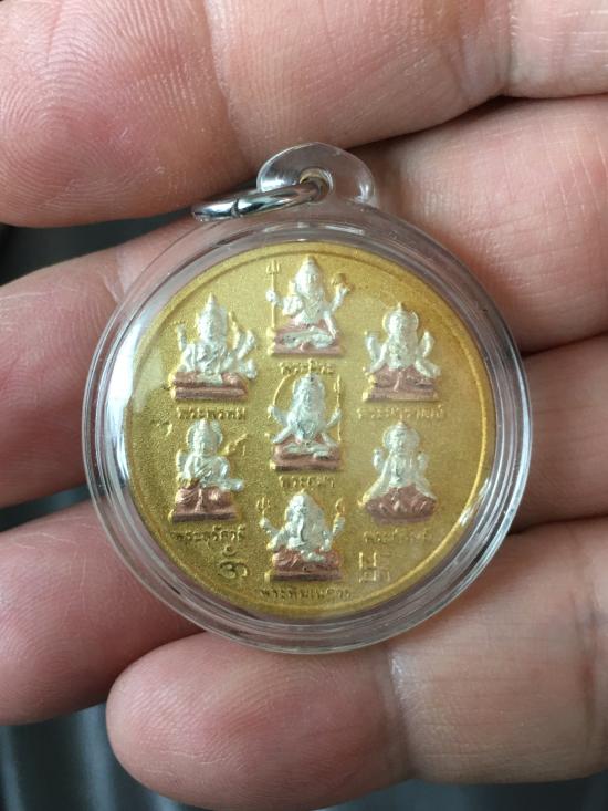 เหรียญ 7มหาเทพ เนื้อสามกษัตริย์ พิธีมหาเทวาพุทธาภิเษก โดยพระเกจิคณาจารย์ 16 รูป ร่วมอธิษฐานจิตปลุกเสก ณ เทวสถานโบถส์พราหมณ์ เสาชิงช้า กรุงเทพฯ เสริมสิริมงคลในด้านการค้า ประกอบธุรกิจ โชคลาภเงินทอง ทรัพย์สิน และคุ้มครองป้องกันภยันตราย โดยอัญเชิญ "มหาเทพ" ทั้ง 7 องค์ คือ