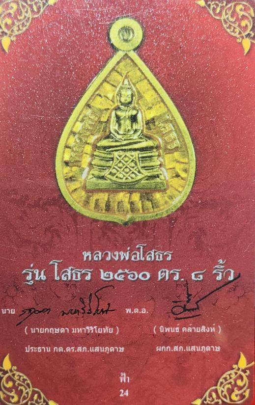 เหรียญใบโพธิ์ สีฟ้า เนื้อทองคำ ชุดกรรมการ No.24 รุ่นโสธร 2560 ตร. แปดริ้ว ยัง wrap พลาสติกไว้ ทองคำ 96.5% พร้อมบัตรรับรองการผลิตจาก บ.แพรนด้า จิวเวลรี่ จำกัด