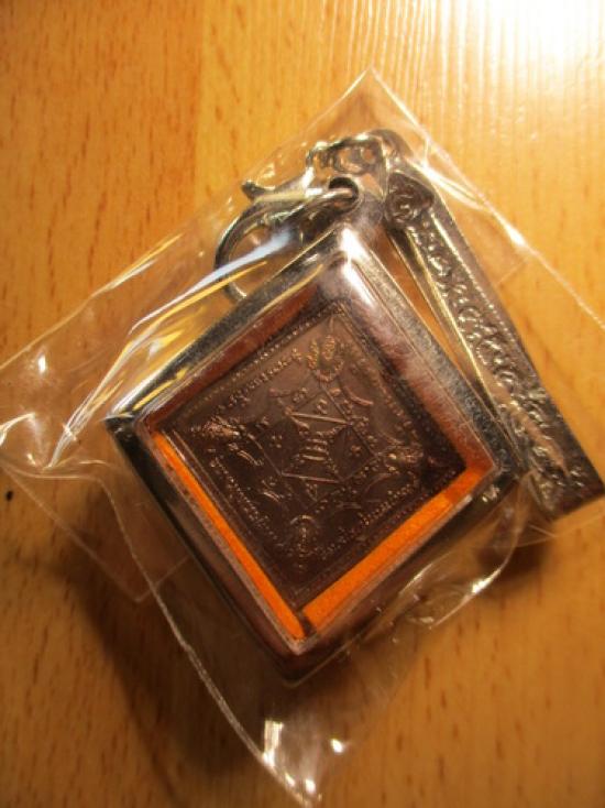 เหรียญพระพรหมสี่หน้า ลพ.เกษม หลังตอกโค้ต ปี38 พิมพ์เล็ก พร้อมกรอบพร้อมแหนบ ขนาดกว้างยาว 2.7ซม รวมกรอบ