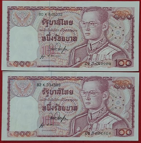 ธนบัตร 100 บาท ร.9 แบบ 12 เลข 6 หลัก หายาก หลังช้างแดง 4 ฉบับ UNC สภาพใหม่ ไม่ได้ใช้ ไม่มีรอยพับ |