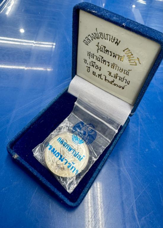 เหรียญกลมไตรมาส"เนื้อเงิน" หลวงพ่อเกษม ปี 2537 พร้อมซองเดิม กล่องเดิม
