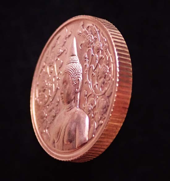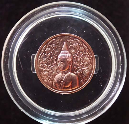 เนื้อทองแดง (ยิงโค๊ตเลเซอร์ หมายเลข ที่ขอบเหรียญ) สวยมาก ตลับกลมพลาสติกเดิมๆ