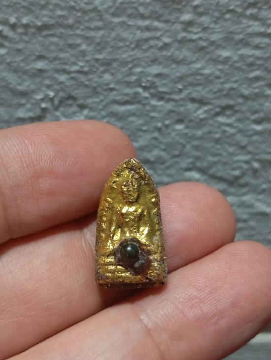 พระรอดพิธีเสด็จกลับ ปี 2511 พิธีปลุกเสก วัดถ้ำเขาเงินจังหวัดชุมพร เนื้อผงว่านสบู่เลือด พิมพ์พระคะแนน ติดเม็ดแร่เหล็กไหล สภาพสวยปิดทองเก่า อ.ชุม ไชยคีรี ปลุกเสก |