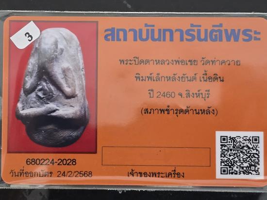 พระปิดตา หลวงพ่อเชย วัดท่าควาย จ.สิงห์บุรี เนื้อสีไผ่สุก สีนี้หายากครับ พร้อมบัตรรับรอง |