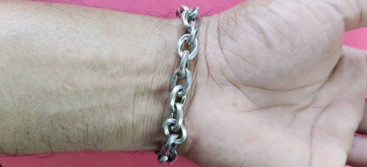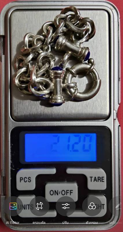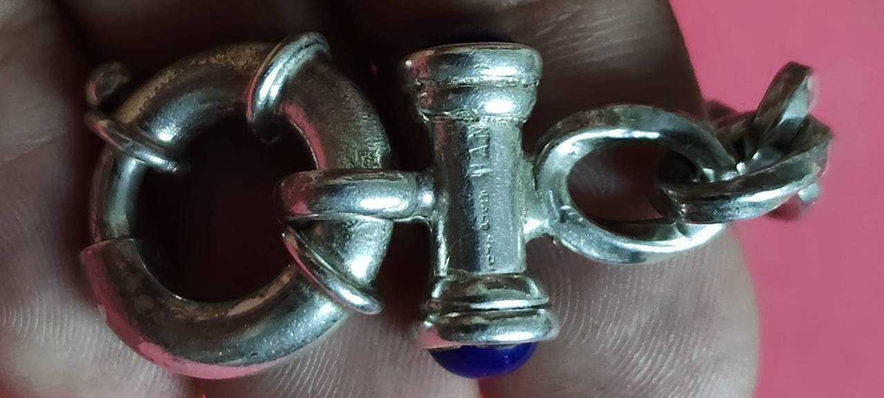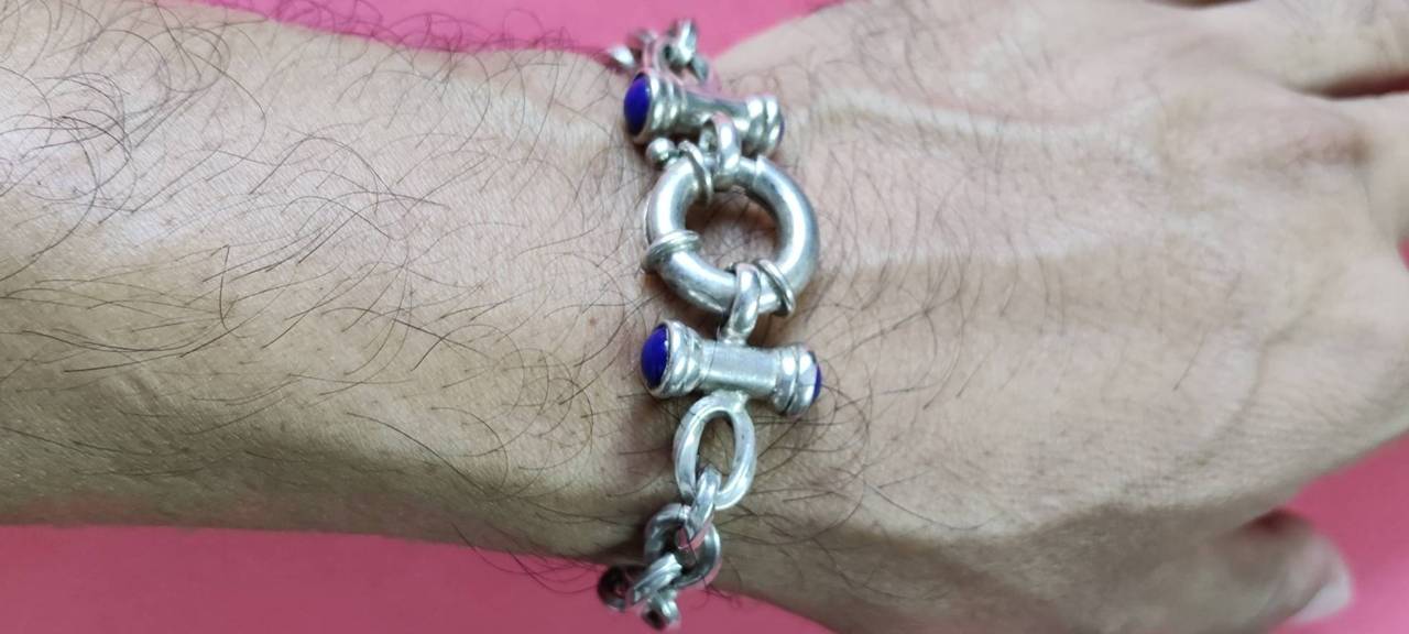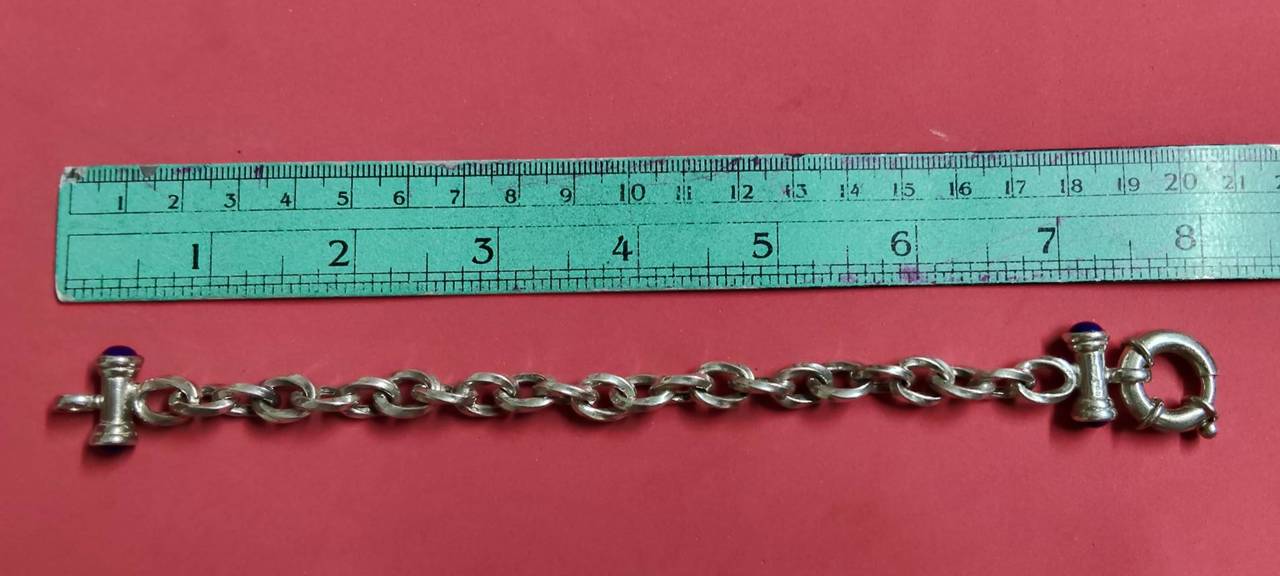 เลสแขนข้อมือ หัวฝังพลอยสีน้ำเงินทั้งสองด้าน สวยงามสบูรณ์แข็งแรง งานนอก ของ ltaly เลข 925 น้ำหนัก 21.20 กรัม |