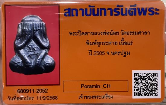 พระปิดตาเนื้อแร่ หลวงพ่อน้อย วัดธรรมศาลา รุ่นแรก พิมพ์หูกระต่าย 2505 นครปฐม (พร้อมบัตรรับรอง) สภาพสวยแชมป์ วัดใจ ไม่วัดดวง |