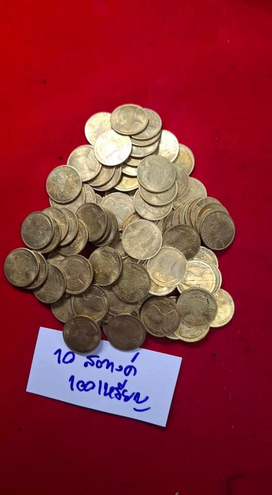 10 สตางค์ตราแผ่นดินปี 2500 เนื้อทองเหลือง ไม่ผ่านใช้ เก่าเก็บ 100 เหรียญ หายากครับ