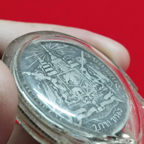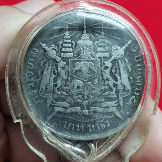 เหรียญบาทหนึ่ง รัชกาลที่5 สภาพเลี่ยมมีห่วงเชื่อม เนื้อเงิน |