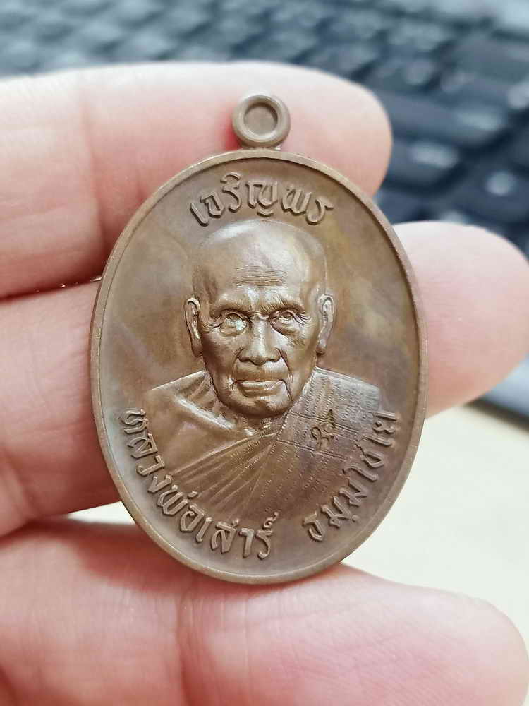 วัดใจ 100 เหรียญเจริญพร หลวงพ่อเสาร์ วัดโพธิ์ศรี อ.เมือง จ.มหาสารคาม 2566 ทองแดง หมายเลข 486 กล่องเดิม |