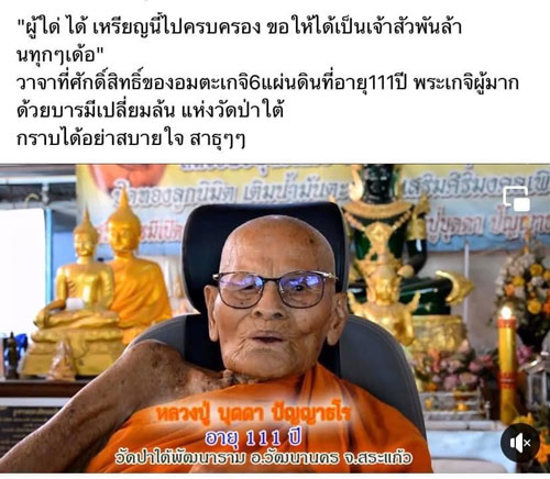 1 ใน 207 เหรียญประสบการณ์ พระสวยมาก พุทธาภิเษก 2 วาระ เหรียญเจ้าสัวพันล้าน หลวงปู่บุดดา วัดป่าใต้พัฒนาราม จ.สระแก้ว เนื้อมหาชนวนตอก 9 รอบ เลขสวยๆNO.122 กล่องเดิมครับ |