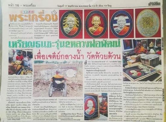 รุ่นนี้ออกหนังสือพิมพ์ข่าวสด รุ่นหลักยอดนิยม 1 ใน 500 เหรียญ 5แชะ2 หลวงพ่อพัฒน์ วัดห้วยด้วน จ.นครสวรรค์ ปี2564 เนื้อนวะโลหะหน้ากากเงิน ลงยาลายเสือ(สมนาคุณยกลัง) เลขสวยNO.112 สวยมาก กล่องเดิมครับ |