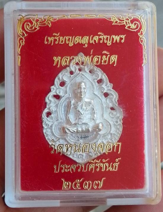 เหรียญหล่อฉลุ เนื้อเงิน รุ่น"เจริญพร" หลวงพ่อยิด วัดหนองจอก ประจวบคีรีขันธ์ 2537 พร้อมกล่องเดิม ตอก Number 281 สภาพสวย