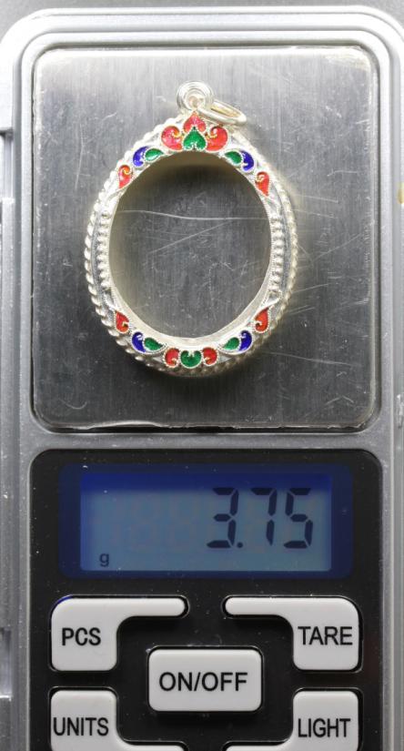กรอบเงินลงยา งานสุโขทัย ขนาดกรอบใน 2.3 x 2.8 ซม. สภาพดีตามรูปครับ |