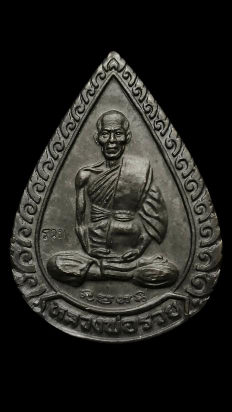 เหรียญหยดน้ำ หลวงพ่อรวย วัดตะโก ปี 39 เนื้อทองแดงรมดำ |