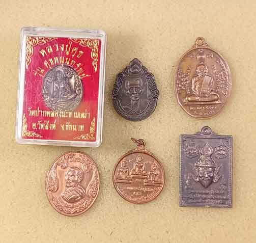 เหรียญสุขหนุนทรัพย์ หลวงปู่ศุข+ พระครูประสิทธิ์ธรรมญาณ วัดนางโน กาญจนบุรี+ พระมงคลโสภิต วัดบางขัน ปทุมฯ + เหรียญ จังหวัดลพบุรี 3 เหรียญ |