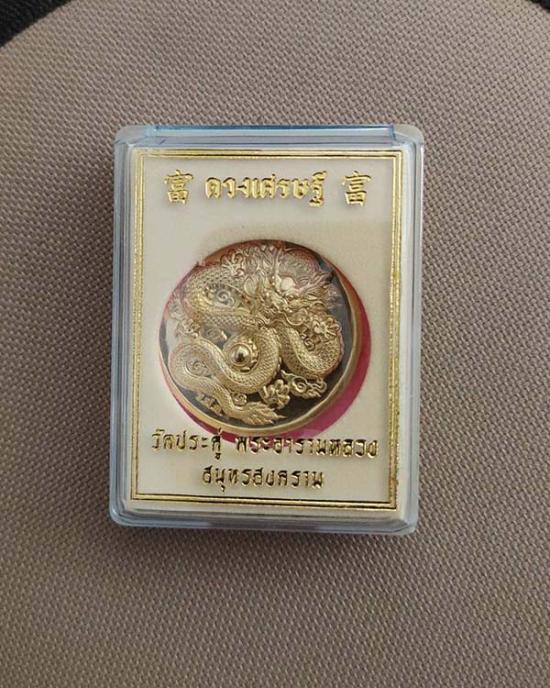 เหรียญมังกรดวงเศรษฐี หลวงพ่อมหาสุรศักดิ์ วัดประดู่ พระอารามหลวง ทองแดงกะไหล่ทอง พร้อมกล่องเดิมสวย เคาะแรกแดงครับ |