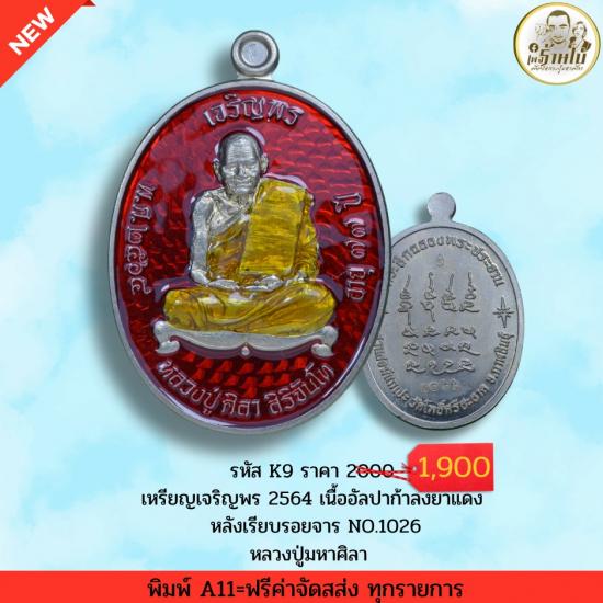 เหรียญเจริญพรบน หลวงปู่มหาศิลา สิริจันโท จ.กาฬสินธุ์ 2564 เนื้ออัลปาก้าลงยาแดง สภาพสวยมากคร้าบบบ