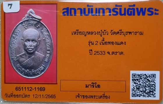 เหรียญรุ่น2 หลวงปู่บัว วัดศรีบูรพาราม ปี2533 เนื้อทองแดง |