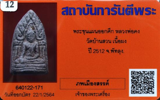 ( 12 ) พระผงบารมีคงไชยชุม พิมพ์พระขุนแผนออกศึก อ.ชุม ไชยคีรี , หลวงพ่อคง วัดบ้านสวน เนื้อผง ปี 2513 จ.พัทลุง ( มวลสารรุ่นนี้เข้มขลังมาก ) มาพร้อมบัตรรับรองพระแท้การันตีพระ