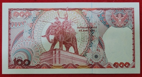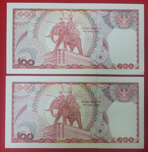 ธนบัตร 100บาท ร.9 แบบ 12 หลังช้างแดง สภาพ UNC ใหม่,สวย, ไม่ผ่านการใช้ เลขเรียงกัน จำนวน 2ฉบับ