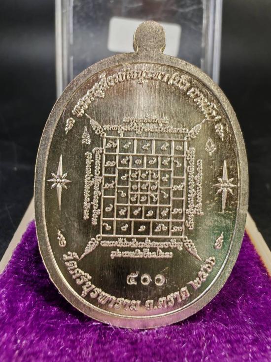 วัดใจ 109 บาท รับพระ 1 กล่อง เหรียญเจริญพรไตรมาส 66 หลวงปู่บัว ถามโก วัดศรีบูรพาราม จ.ตราด เนื้ออัลปาก้าลงยาสีม่วง No. 500 เลขสวย สมนาคุณศูณย์จอง กล่องเดิมๆ