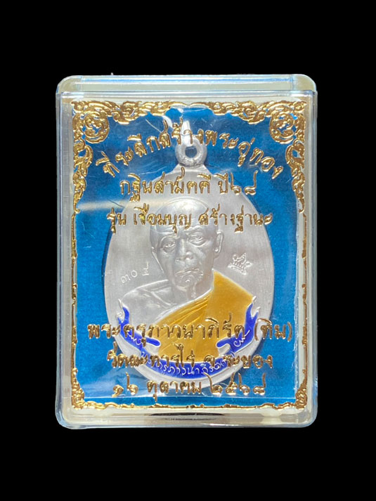 เหรียญห่วงเชื่อม หลวงปู่ทิม วัดละหารไร่ เชื่อมบุญ สร้างฐานะ ปี2568 เนื้อเงินลงยาจีวรโบว์น้ำเงิน เลข 304