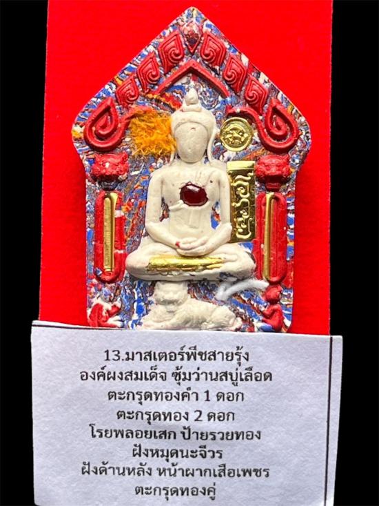 พรขุนแผนเสือนอนกิน รุ่น แสนพยัคฆ์ หลวงพ่อประสูติ วัดในเตา จ.ตรัง หลวงปู่ศิลา ปลุกเสก วาระที่ 1 ธรรมอุทยาน วาระที่2 หลวงพ่อประสูติปลุกเสกที่วัดในเตา เนื้อมาสเตอร์พีชสายรุ้ง องค์ผงสมเด็จ ซุ้มว่านสบู่เลือด ตะกรุดทองคำ 1 ดอก ตะกรุดทอง 2 ดอก โรยพลอยเสก ป้ายรวยทอง ฝังหมุดนะจีวร ฝังด้านหลัง หน้ากากเสือเพชร ตะกรุดทองคู่ ปฐมฤกษ์ No.172 พร้อมกล่องเดิมครับ |