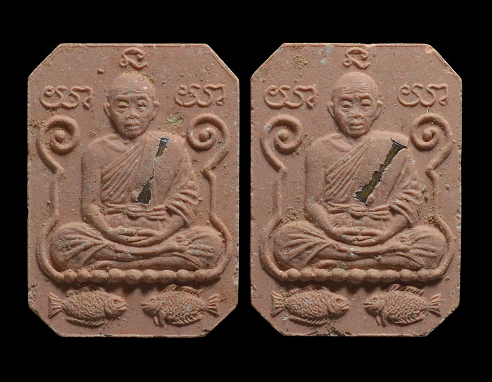 พระผงรูปเหมือนนั่งสมาธิ ( พิมพ์หลวงพ่อปาน ) รุ่น นำเงิน นำทอ ง ( เนื้อผงกระเบื้องหลังคาโบสถ์ ฝังตะกรุดทองฝาบาตร ) จัดสร้างโดย วัดใหญ่สีคิ้ว พ.ศ.2536 ( รับพระ 2 องค์ ) |