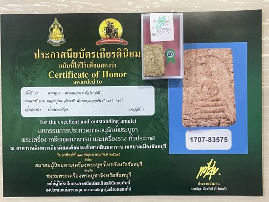 สร้างปี 2485 เนื้อแก่มวลสารวัดระฆัง สภาพสวย สมบูรณ์ ไม่หักไม่ซ่อม รับประกันพระแท้ ดูง่าย ใบประกาศรางวัลที่3งานสมาคม