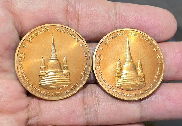 2 เหรียญ . สภาพสวย . เท่าไหร่เท่านั้น ... เหรียญ ในหลวง ร.9 ทรงผนวช วัดบวรนิเวศวิหาร รุ่นบูรณเจดีย์ เนื้อทองแดง ปี 2550 สภาพ UNC ไม่ผ่านการใช้ สวยชัด + ตลับเดิม |