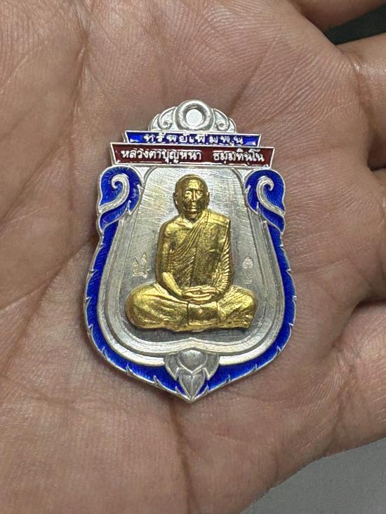 เหรียญหลวงตาบุญหนา ธัมฺมทินฺโน "รุ่นทรัพย์เพิ่มพูน" เนื้อเงินหน้ากากทองคำ สร้างปี 2554 หมายเลข18 |