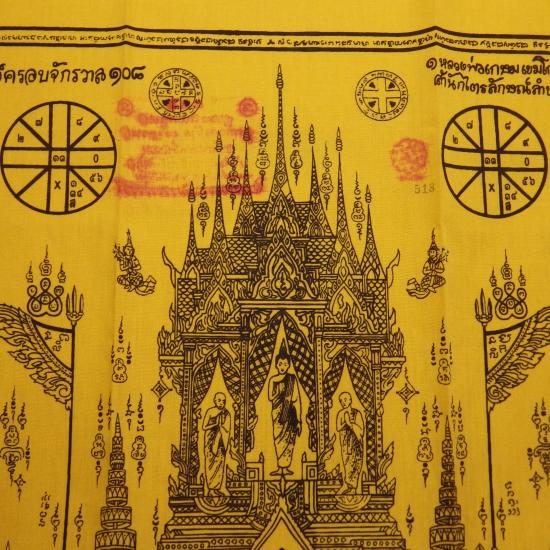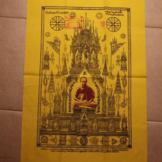 ผืนใหญ่..ขนาด19 X 29 นิ้ว... ผ้ายันต์ครอบจักรวาล 108 หลวงพ่อเกษม รุ่นพุทธคุณ ปี2538 เลข 518 ... (68.9.26 |