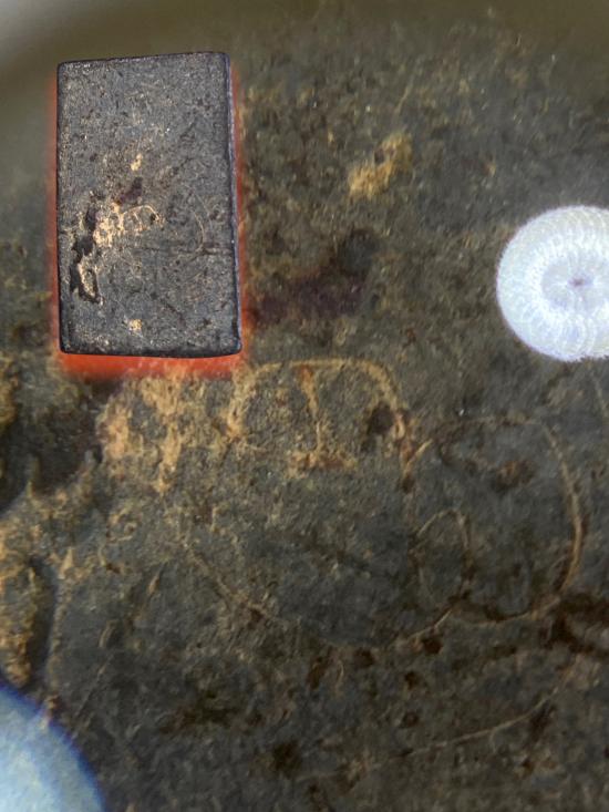 ***กรุชินเก่า ไม่ทราบที่หลังมีรอยจารย์ แต่พิมพ์ชัดลึก เนื้อจัด คราบกรุแน่น ๆ ตามซอกพิมพ์ สภาพเก็บยาวได้เลย ศักยภาพขึ้นเรื่อย ๆ ในอนาคต เหมาะสำหรับสายสะสมที่มองพระเก็บระยะยาว