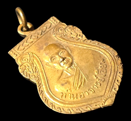 เหรียญเสมาหลังยันต์มหาโสฬสมงคล หลวงปู่เอี่ยม ปฐมนาม วัดสะพานสูง จ.นนทบุรี เนื้อทองฝาบาตร สภาพสวย ไม่มีกล่อง