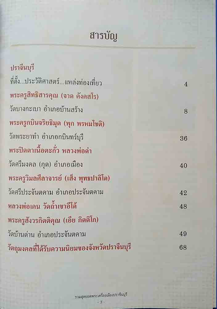 หนังสือ รวมสุดยอดพระเครื่องเมือง ปราจีนบุรี ดินแดนแห่งธรรม ที่มีพระคณาจารย์ดังหลายรูป ผู้สร้างวัตถุมงคลที่เข้มขลังมีคุณค่า เป็นที่นิยมสะสมในวงการพระ |
