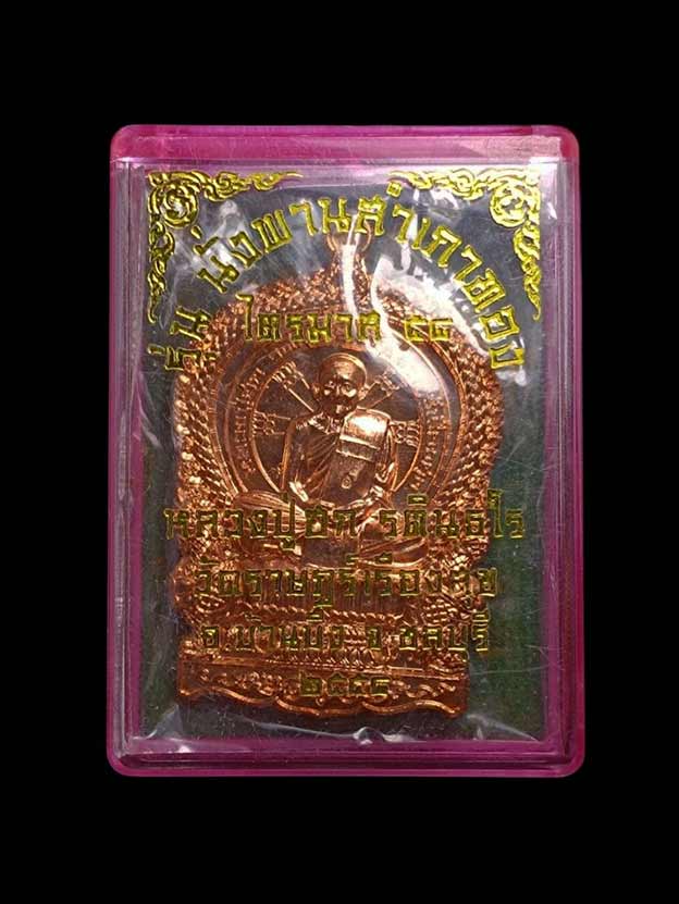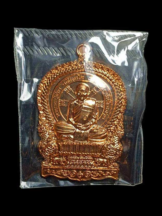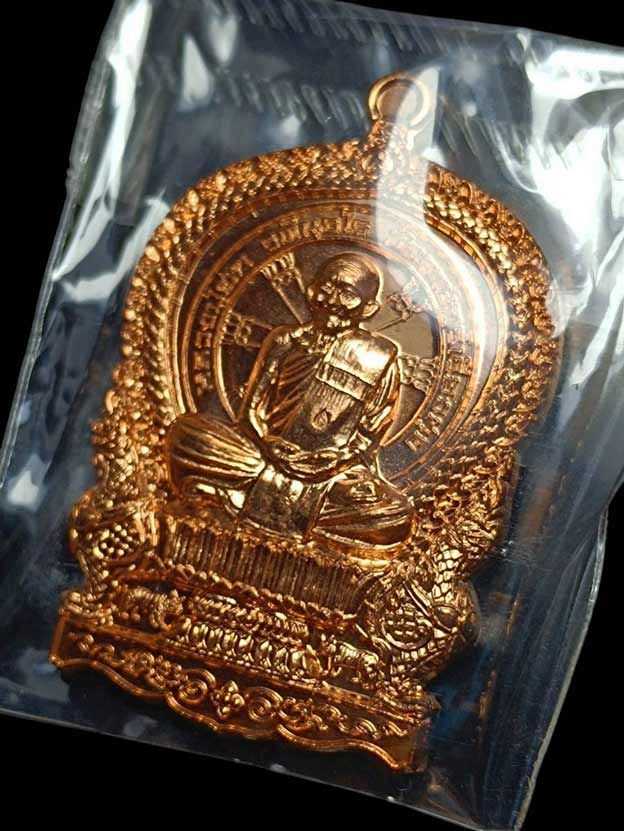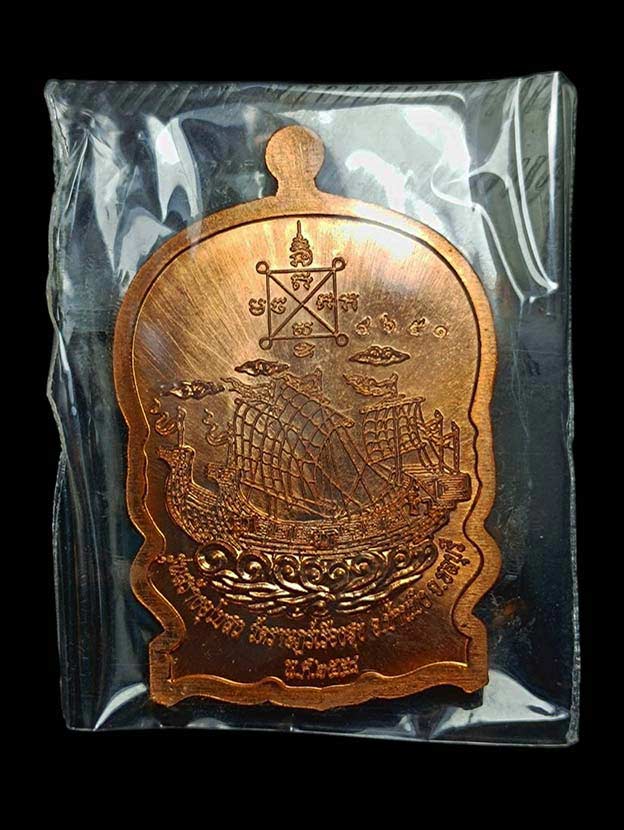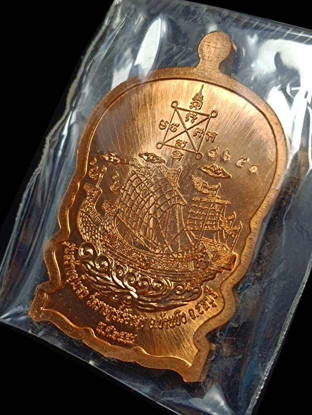 เหรียญนั่งพานสำเภาทอง หลวงปู่ฮก วัดราษฏร์เรืองสุข จ.ชลบุรี ปี 2558 (เนื้อทองแดงผิวไฟ) ตอกโค้ต หมายเลข 9651 พร้อมกล่อง |
