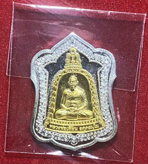 หลวงพ่อเพี้ยน เหรียญเงินหน้าทองคำ รุ่นทรัพย์ทวีคูณ ไตรมาส60 วัดเกริ่นกฐิน จ.ลพบุรี