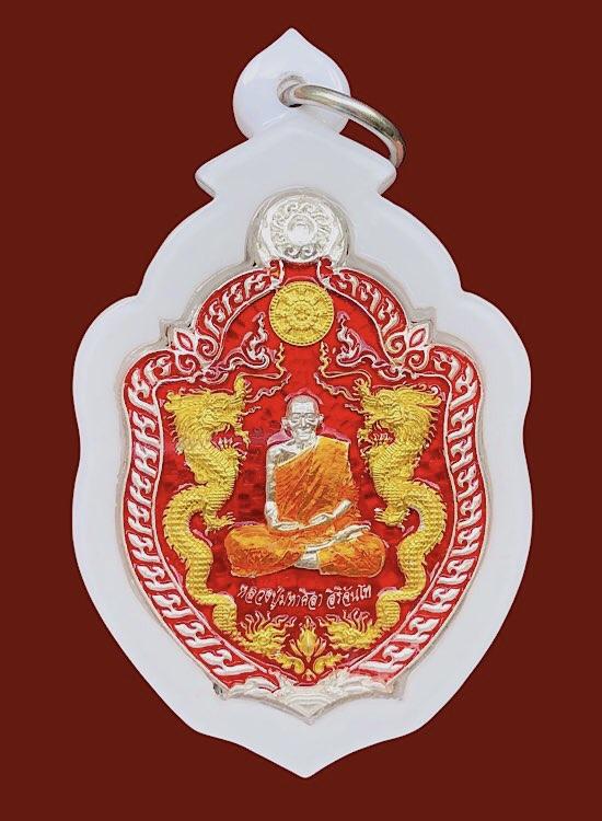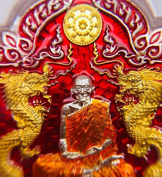 หลวงปู่มหาศิลา เจ้าสัวอุดมทรัพย์ เนื้อเงินลงยาแดง มังกรชุบทอง จมูกโด่ง เลข 52 กล่องครบ ยุดต้นปี64 หมุนเวียนน้อย คัดสวยๆ
