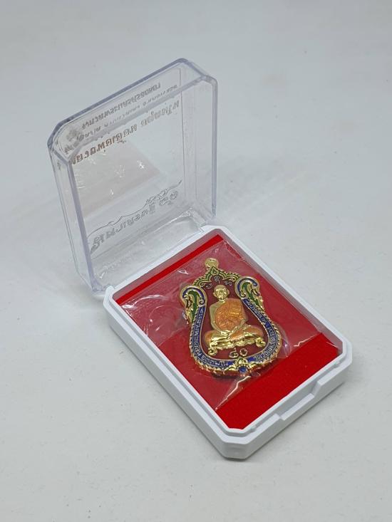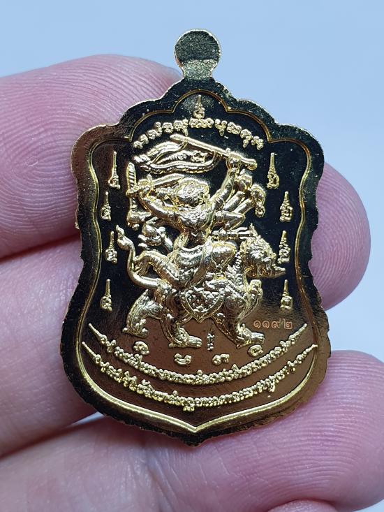 ..วัดใจ..เหรียญรูปเหมือน หลังหนุมาน8กรขี่สิงห์ รุ่น มหาเศรษฐี๘๐ หลวงพ่อเอื้อน วัดวังแดงใต้ พระนครศรีอยุธยา เนื้อกะไหล่ทองลงยาแดง |