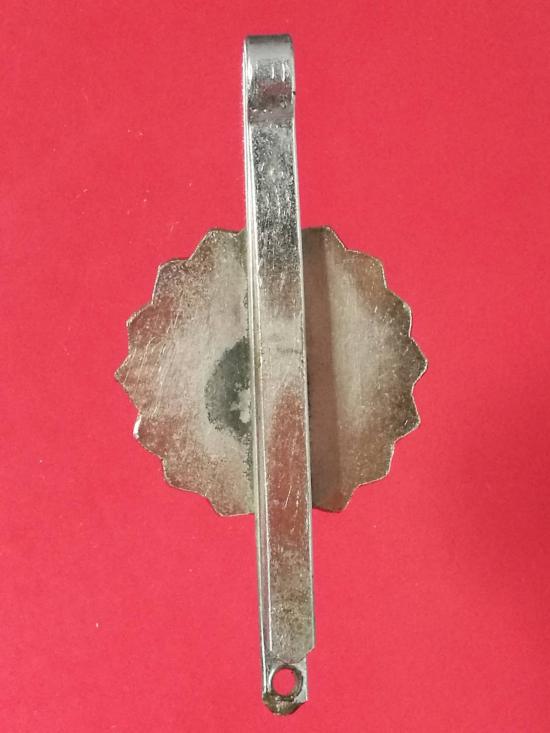 แหนบพัดยศ ที่ระลึกในการสรงน้ำ พระครูปริยัติวราทร วัดศรีมหาราชา จ.ชลบุรี ปี ๒๕๑๒ เนื้ออัลปาก้าลงยา 2 สี |