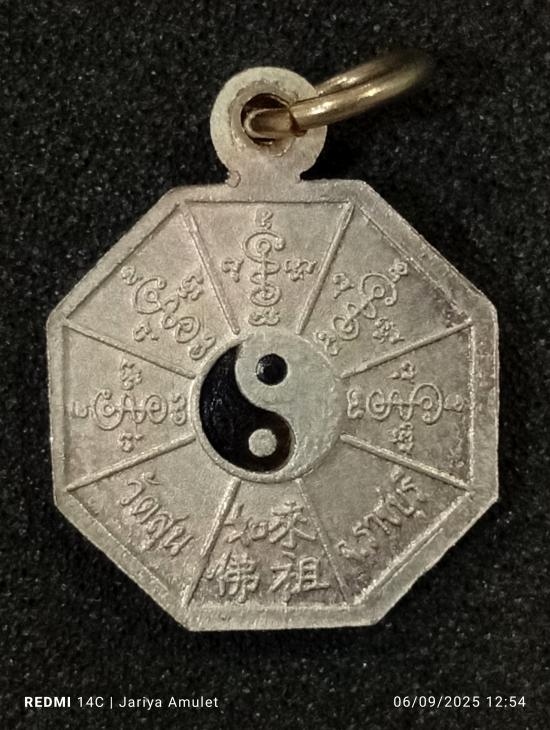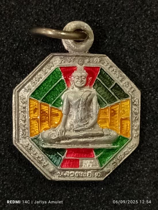 เหรียญยันต์แปดเหลี่ยม หลวงพ่อโต วัดราษฎร์เจริญธรรม(วัดสุน)จังหวัดราชบุรี ปี 2548 เนื้อเงินลงยา